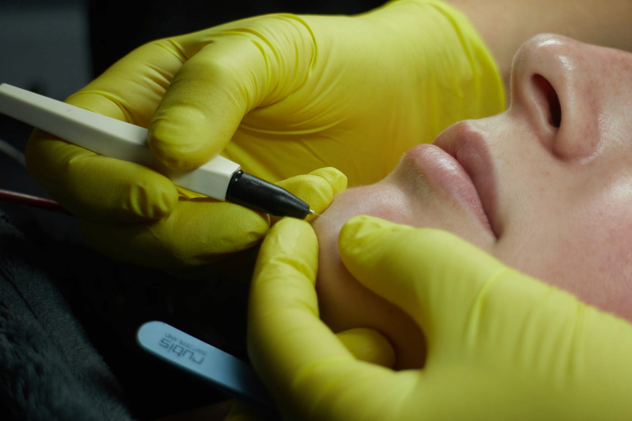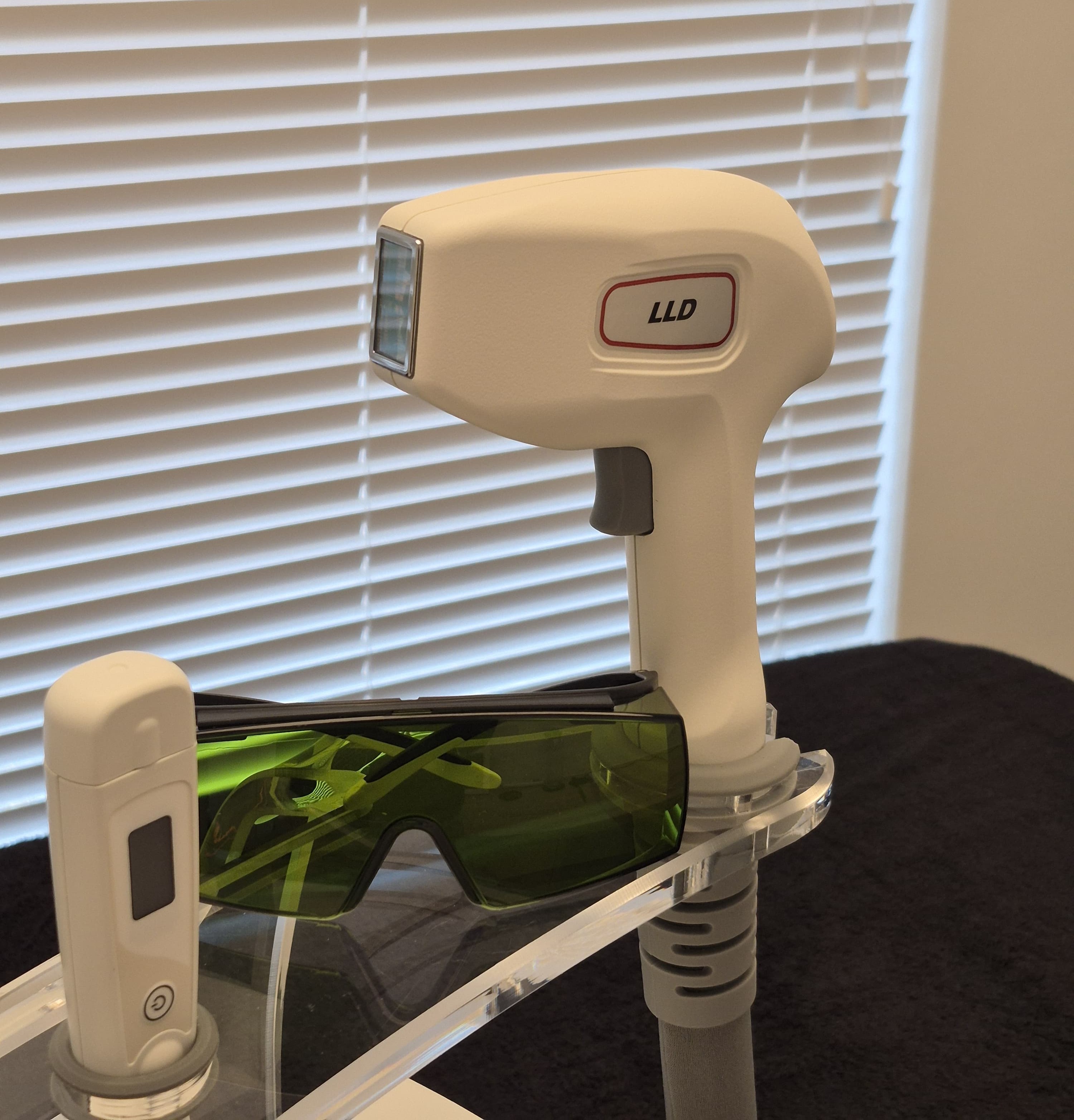 De definitieve ontharing wordt gedaan met een Magma diode laser en een Sterex-toestel.